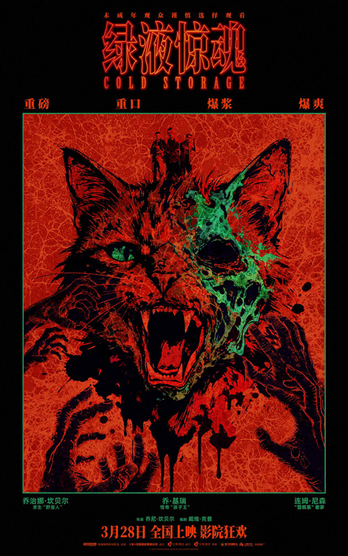3月18日,惊悚科幻喜剧电影《绿液惊魂》发布一组风格独特的艺术海报。海报主体以剪影的形式呈现,营造出一种神秘又紧张的氛围。深红的底色仿佛吞噬一切,致命的绿液在不同生物的血肉中肆意蔓延。营救小队的三人抱团行动,在海报上方直面眼前的怪物,而中心的位置分别展示了腐烂半张脸的猫,以及黏着绿液的变异鹿,它们露出“死亡凝视”的目光,令人毛骨悚然。影片由“怪奇孩子王”乔·基瑞、“营救系老爹”连姆·尼森、“求生野蛮人”乔治娜·坎贝尔领衔主演,将于3月28日“引爆”大银幕。
